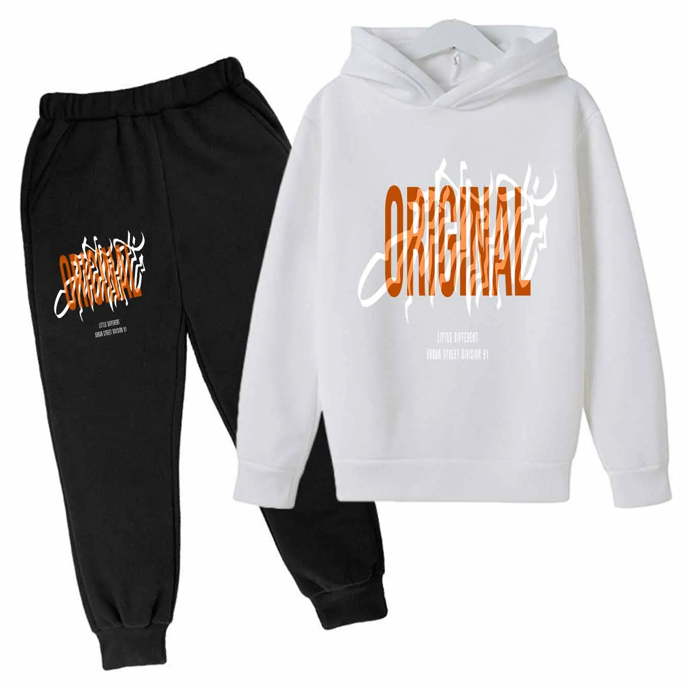 Survêtement urbain pour enfants 2 pièces, sweat à capuche et pantalon de jogging imprimés originaux, tenue de sport décontractée pour garçons et filles