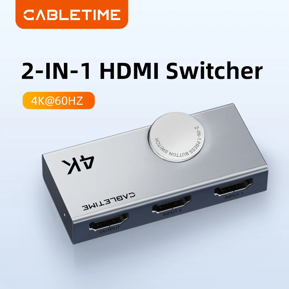 CABLETIME 4K 60Hz Commutateur séparateur HDMI 2 entrées 1 sortie Bidirectionnel pour Xiaomi Mi Box Xbox PS4 TV Box Commutateur HDMI bidirectionnel