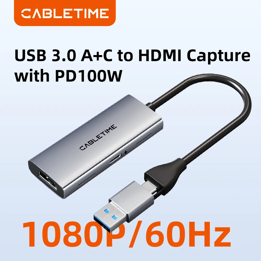 CABLETIME – carte de capture vidéo USB3.0 4K avec PD 100W, HDMI vers USB/type-c, captureur de jeux vidéo pour PC, commutateur de caméra, Xbox PS4/5