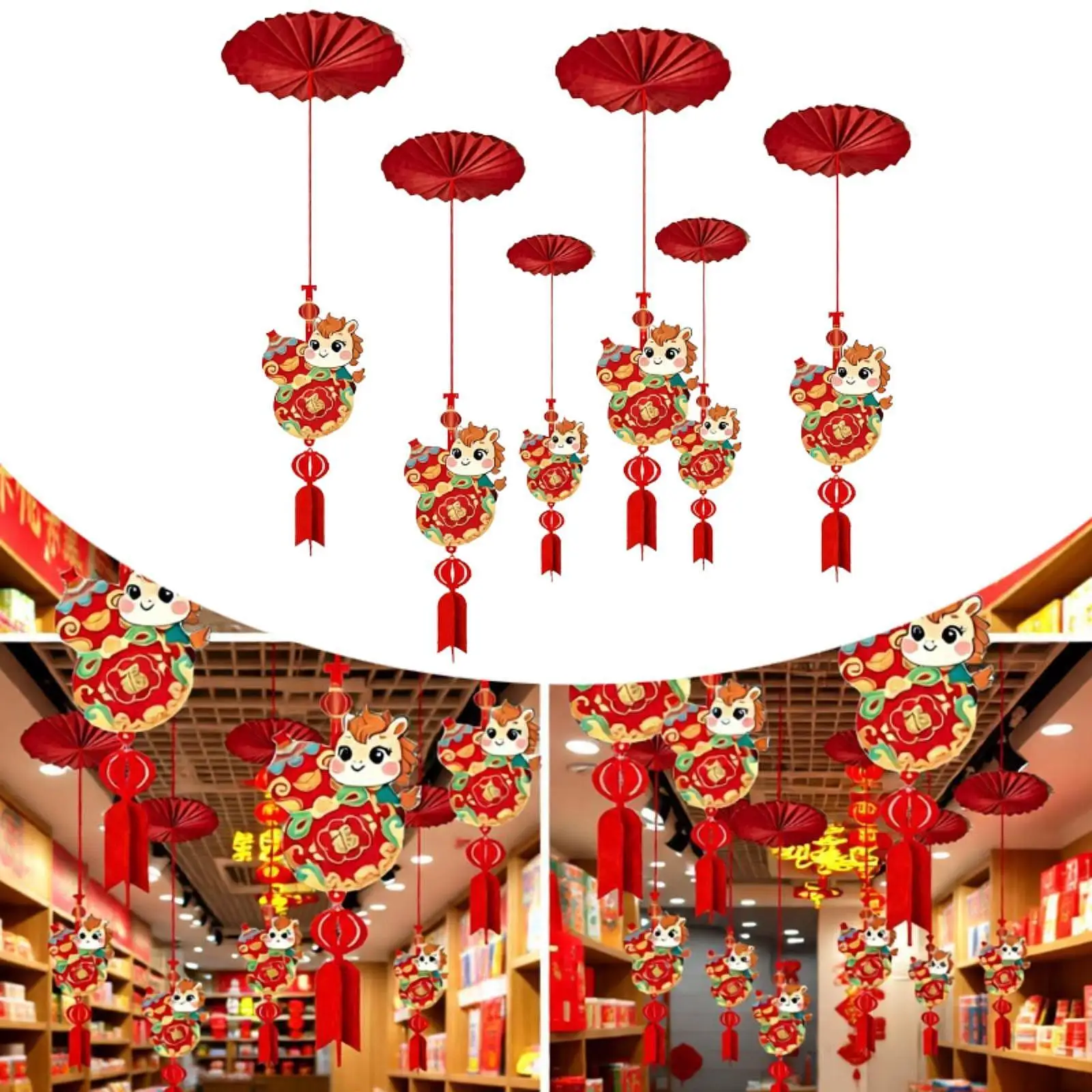 Pendentif de Nouvel An en papier rouge, cheval, ornement suspendu au plafond pour le Nouvel An chinois 2026, décoration de fête du printemps