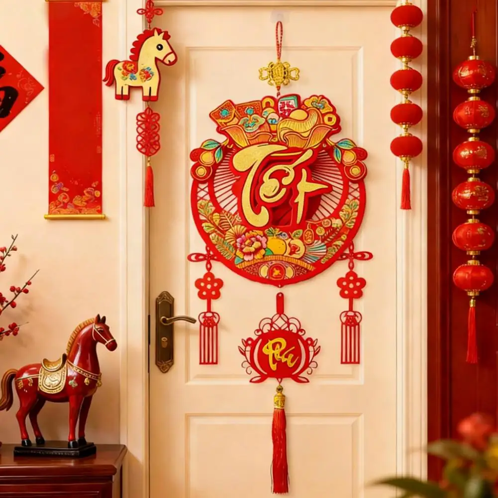 Décoration du Nouvel An chinois 2026 : Pendentif de porte Cheval, Ornement suspendu pour la fête du printemps, Fournitures du Festival du Printemps
