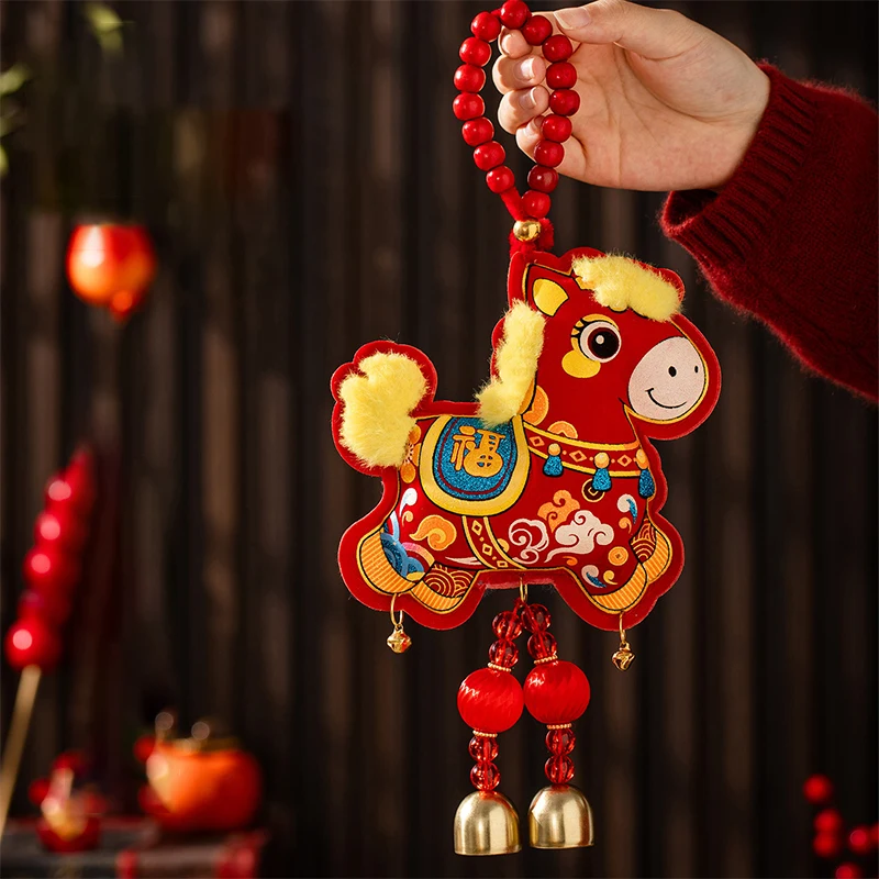 Décorations du Festival du printemps de l'année du cheval 2026, sac d'argent, personnage Fu, porte suspendue, ornement festif de fête du nouvel an