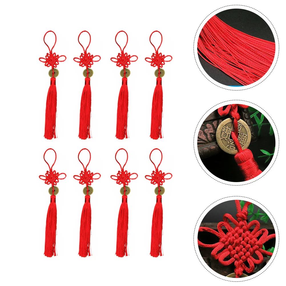 Pendentif pompon à nœud chinois, 8 pièces, décoration suspendue pour voiture, sac, décoration suspendue, accessoire de voiture