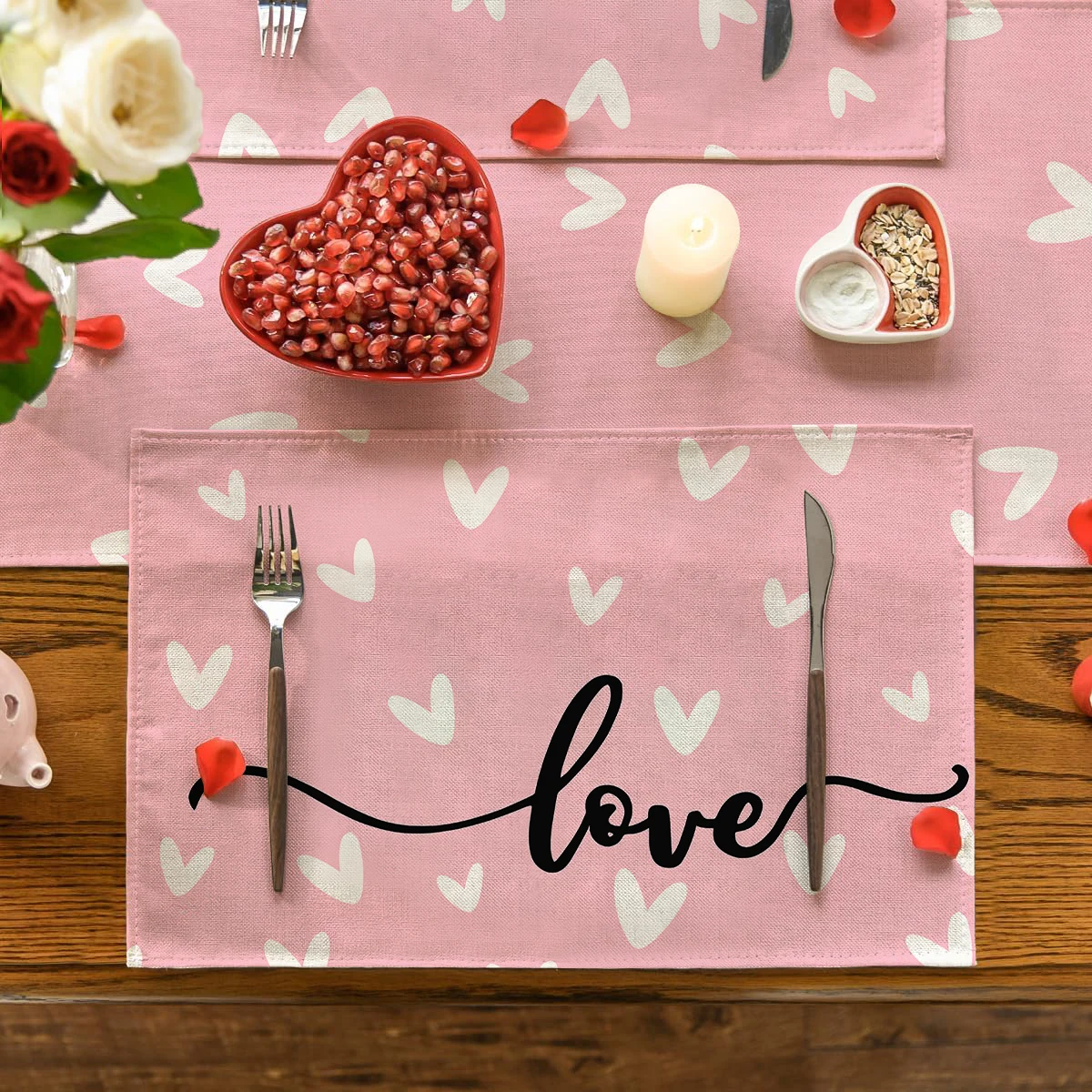 1/4/5/6/7 pièces linge de Table et nappes pour la saint-valentin, tapis de Table à motif de cœur rose, housse de Table antidérapante, Durable et résistante à la chaleur