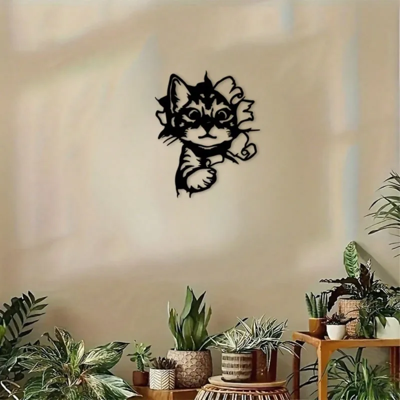 Décoration murale en fer noir en forme de chat, 1 pièce, sculpture animale en métal pour salon, cadeau mignon pour les amoureux des animaux