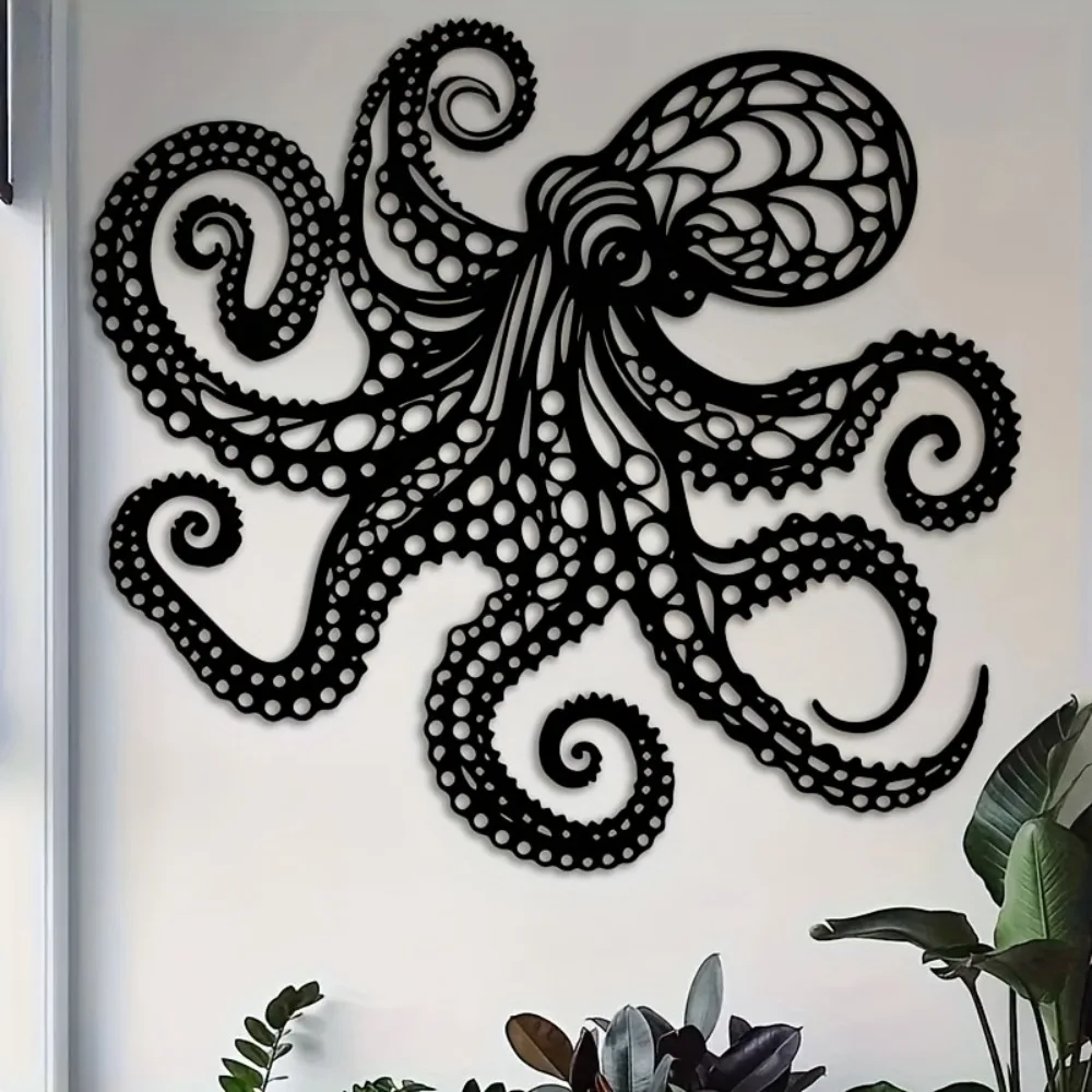 Grande sculpture murale en métal en forme de pieuvre - Décoration gothique victorienne à tentacules découpés au laser pour salle de bain, cadeau nautique d'Halloween