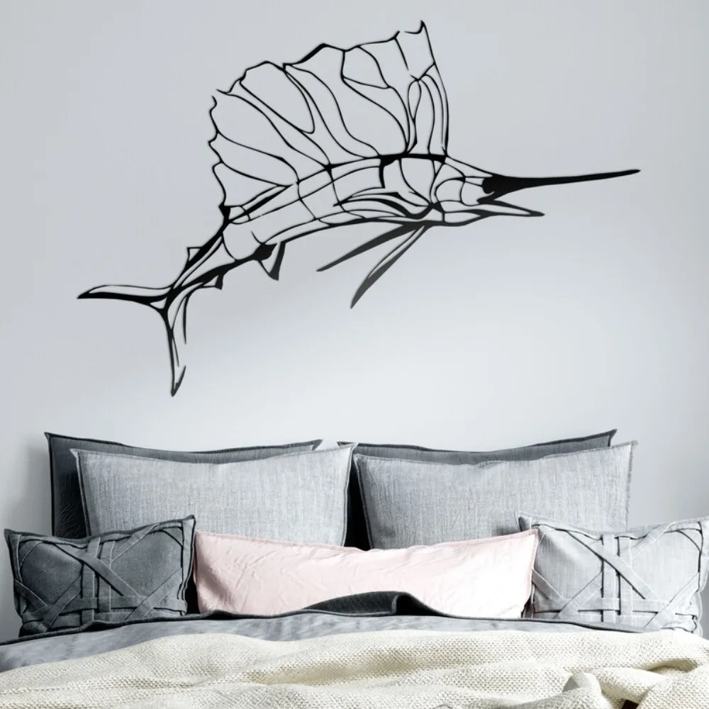 Décoration murale en métal découpé au laser, thème poisson-sabre nautique, pour la maison