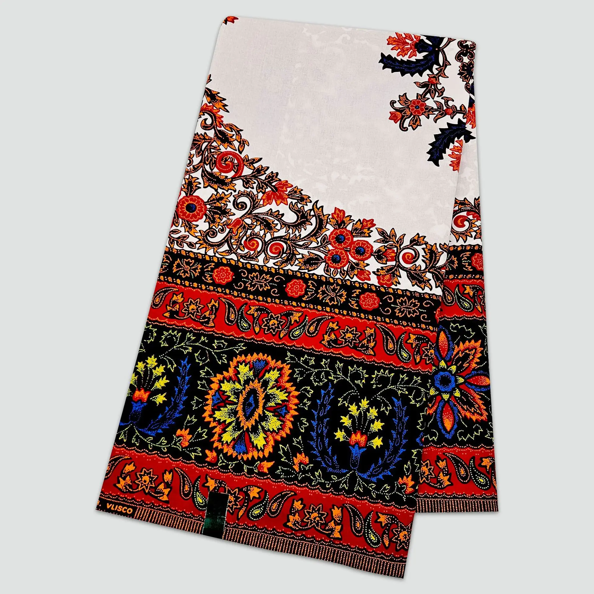 Tissu africain en coton Java blanc imprimé rouge pour la couture DIY de vêtements, robes, pantalons, housses de canapé, coussins, 6 yards de long R6402