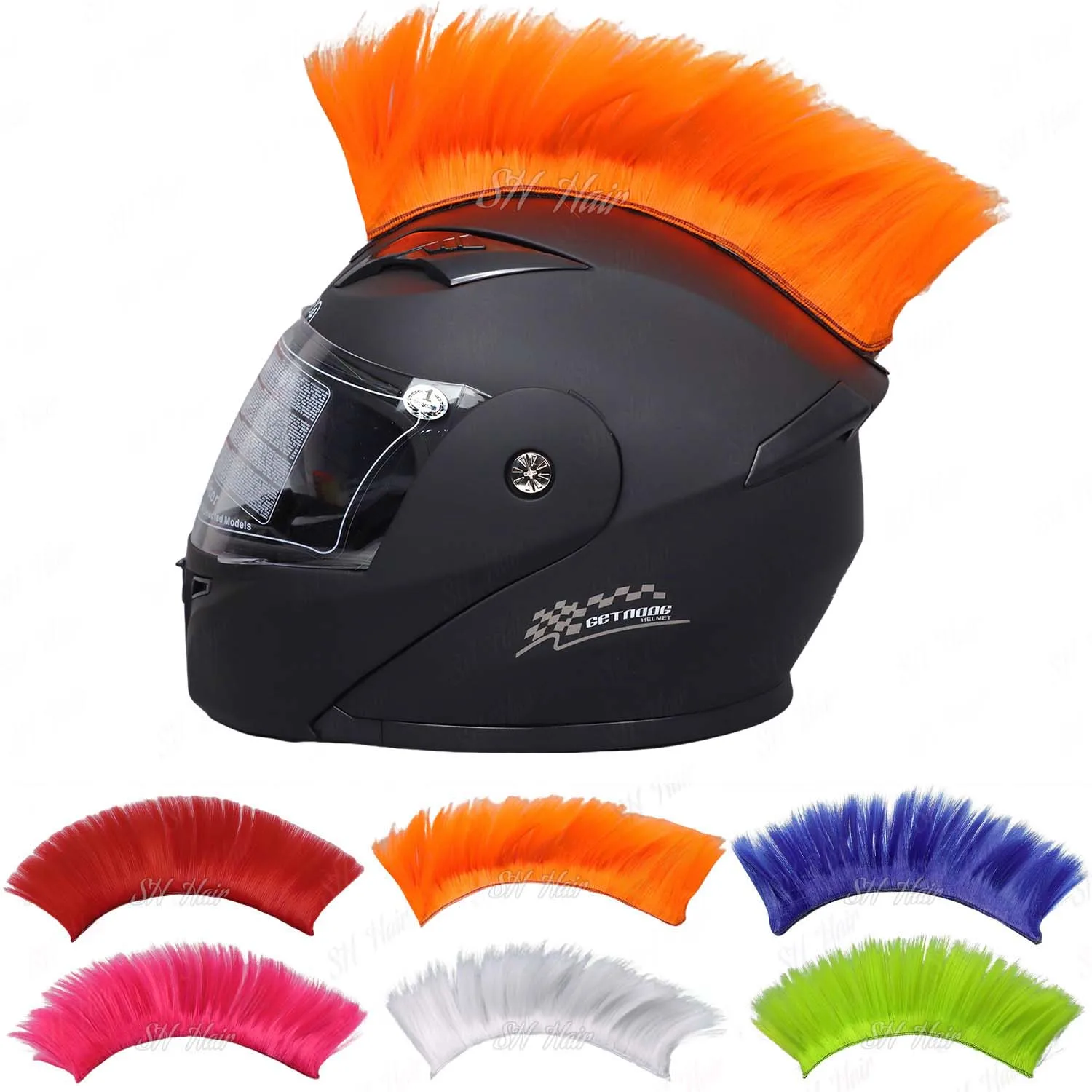 Perruque synthétique en forme de coquille de coq, décoration de casque de moto électrique, perruque Mohawk colorée pour cosplay, fête d'Halloween, Journée des cheveux folles