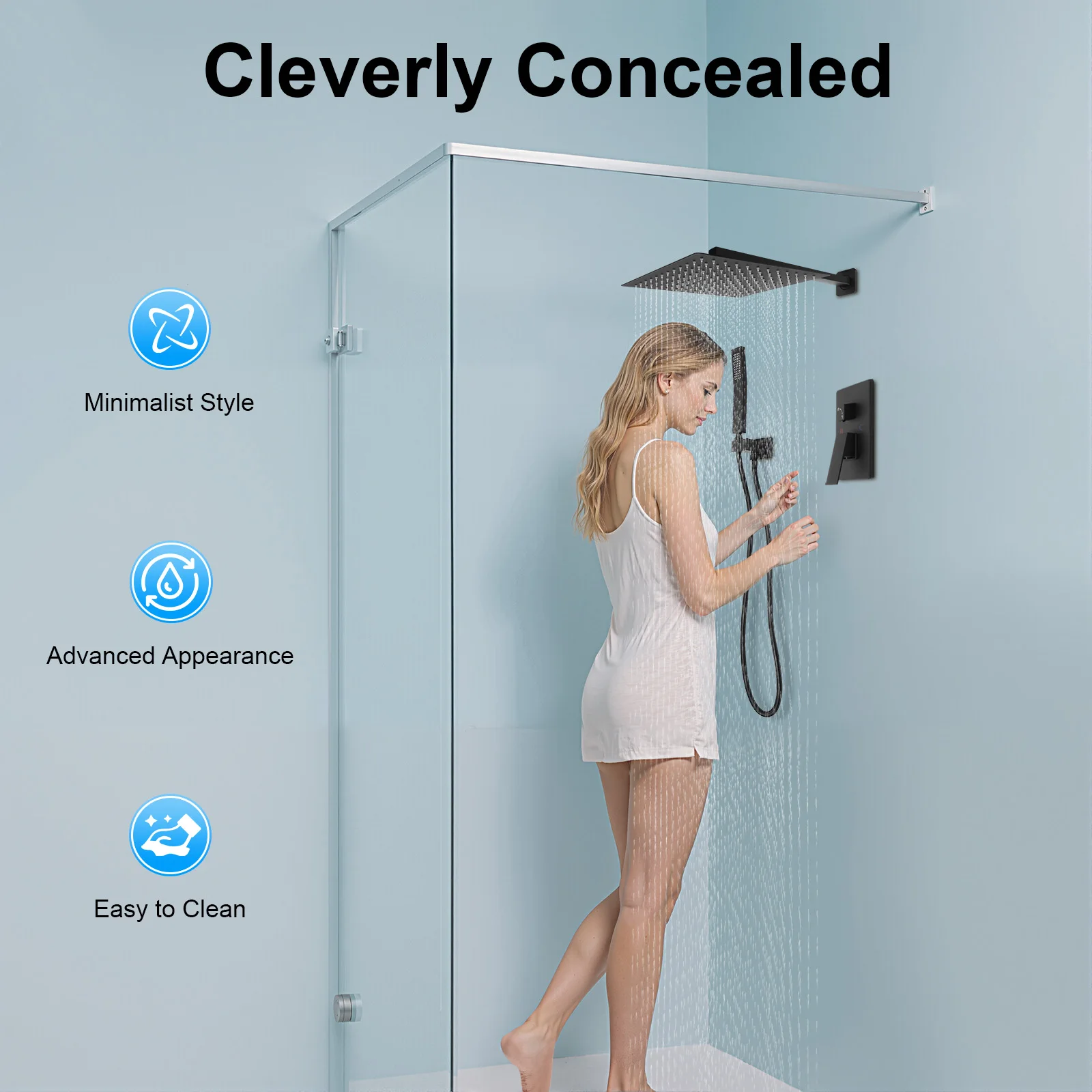 Système de douche pluie encastré noir 30CM avec douchette, ensemble de douche murale effet pluie, ensemble mitigeur de salle de bain, pluie et jet