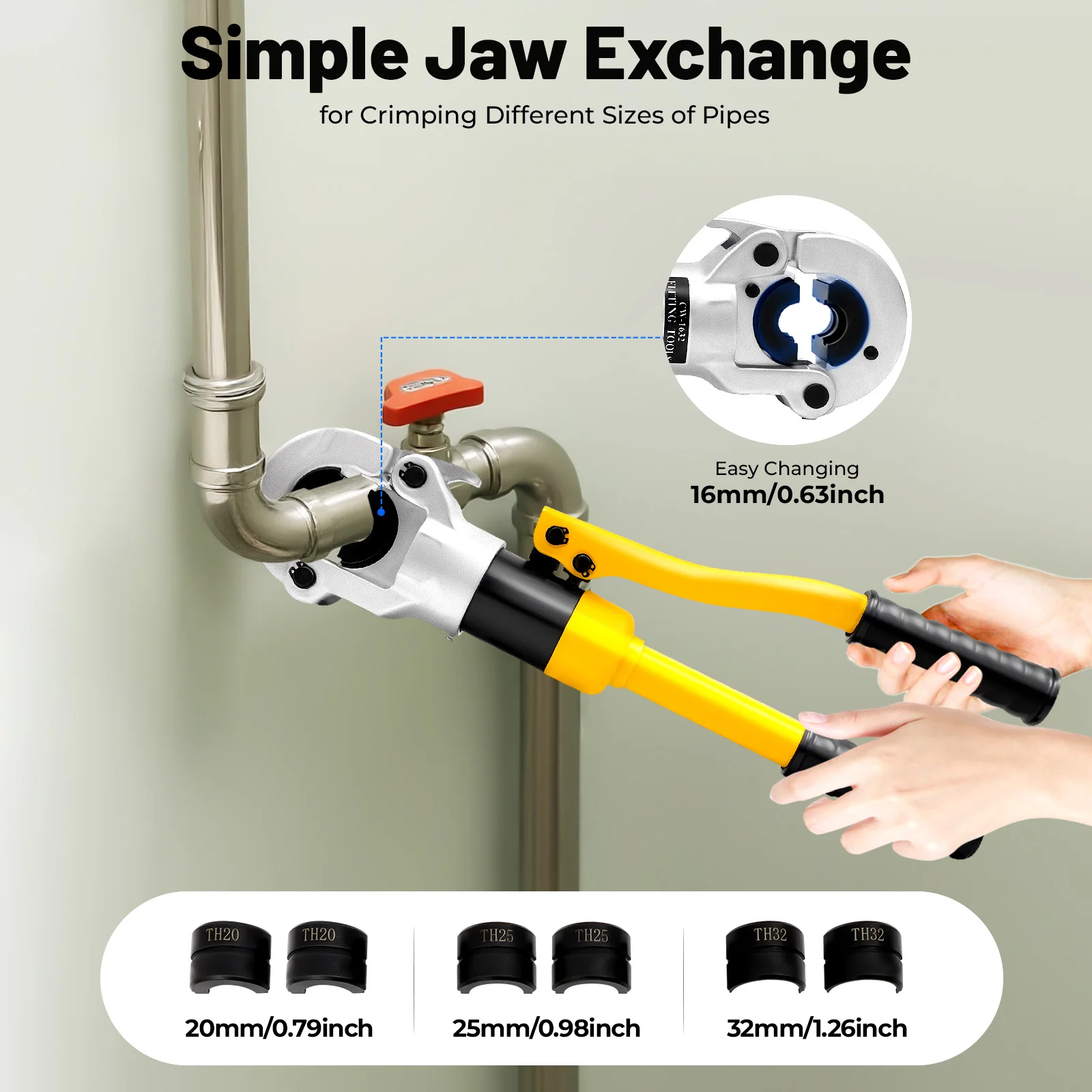 Pince à sertir hydraulique U/TH Contour, outil de sertissage 10T, mâchoires de pressage pour sertir les tuyaux en aluminium, plastique, PEX et PB U16, U20, U25, U32