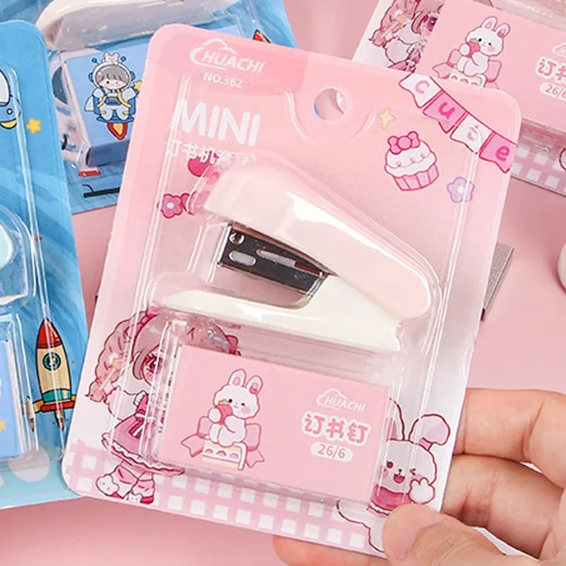 Mini Agrafeuse Couleur Macaron Mignonne 1 pièce, Ensemble de Papeterie Étudiant avec Petite Agrafeuse Pratique et Agrafes pour Reliure de Papier