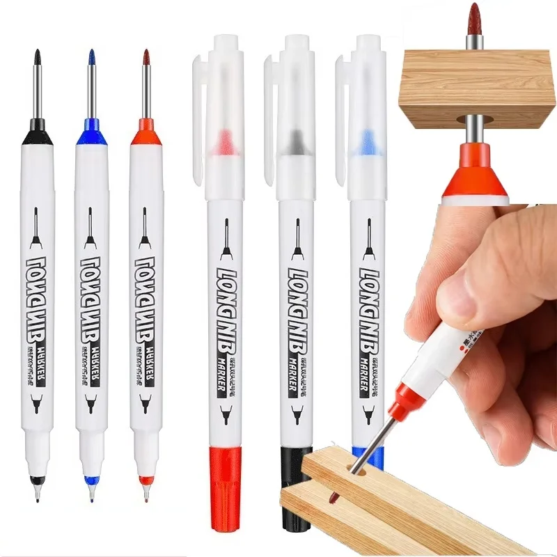 Lot de 45mm, pointe longue étanche, marqueurs pour trous profonds, stylo de charpentier pour carrelage, multi-usages pour le travail du bois, encre noire/blanche/rouge