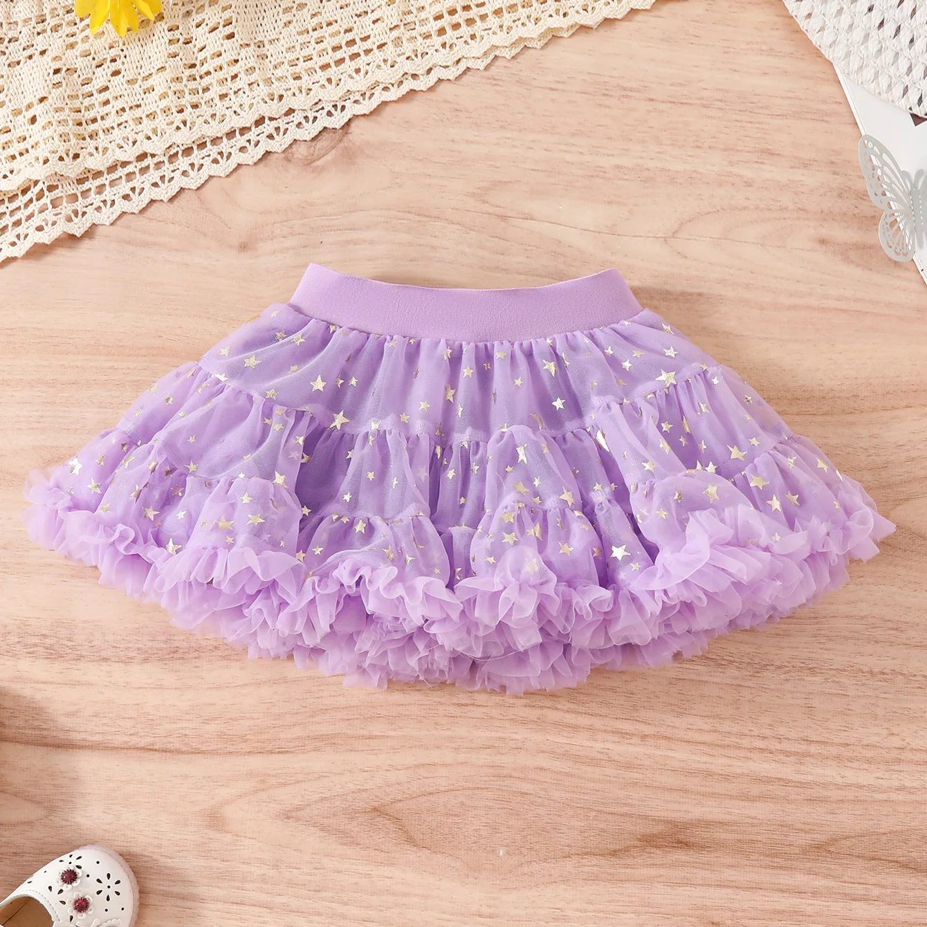 Jupe courte d'été pour filles, nouvelle jupe bouffante en maille pentagramme, brillante et scintillante, à la mode, 2025