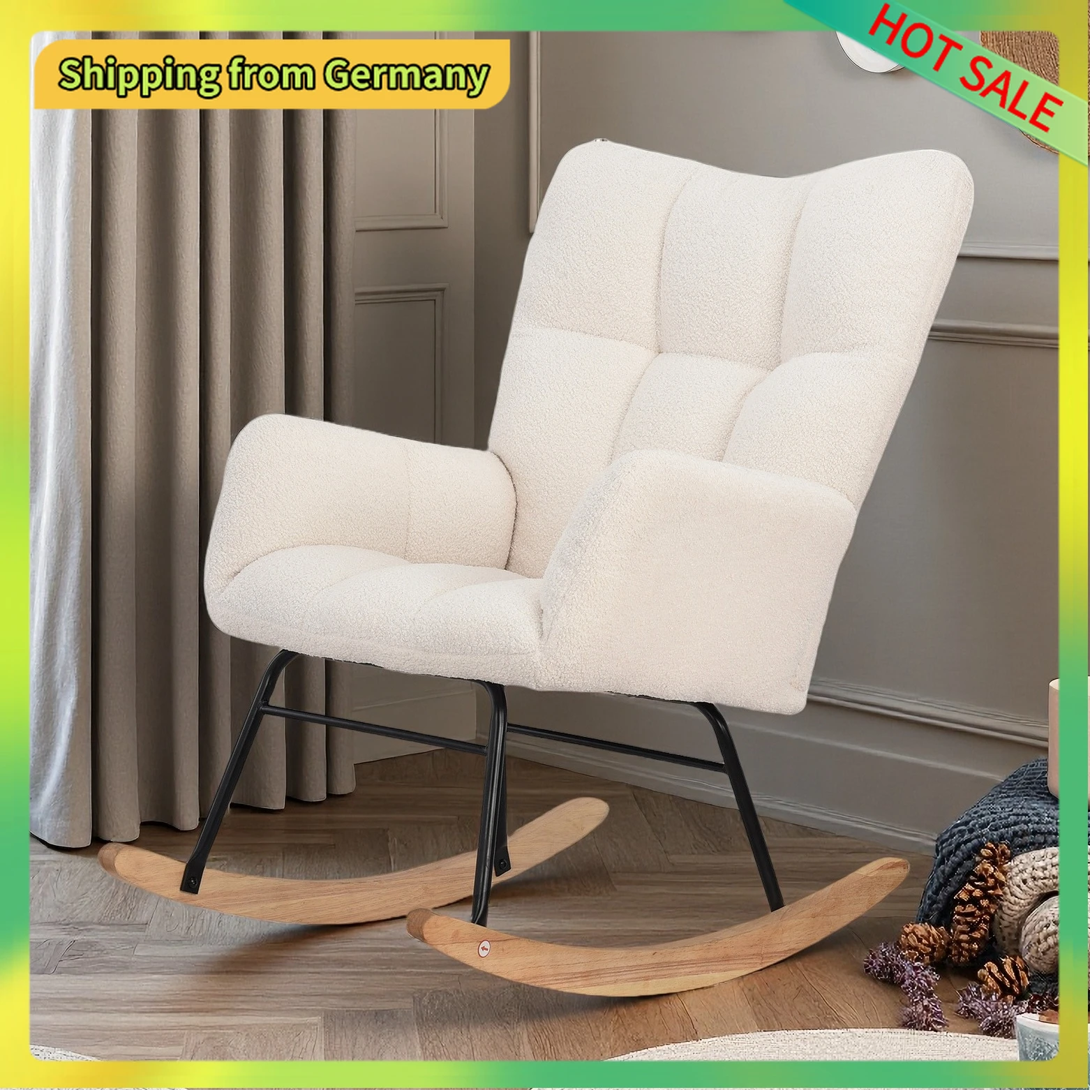 Comanlai Chaise à bascule moderne avec dossier haut rembourré, chaise relaxante pour salon, canapé simple, laine d'agneau
