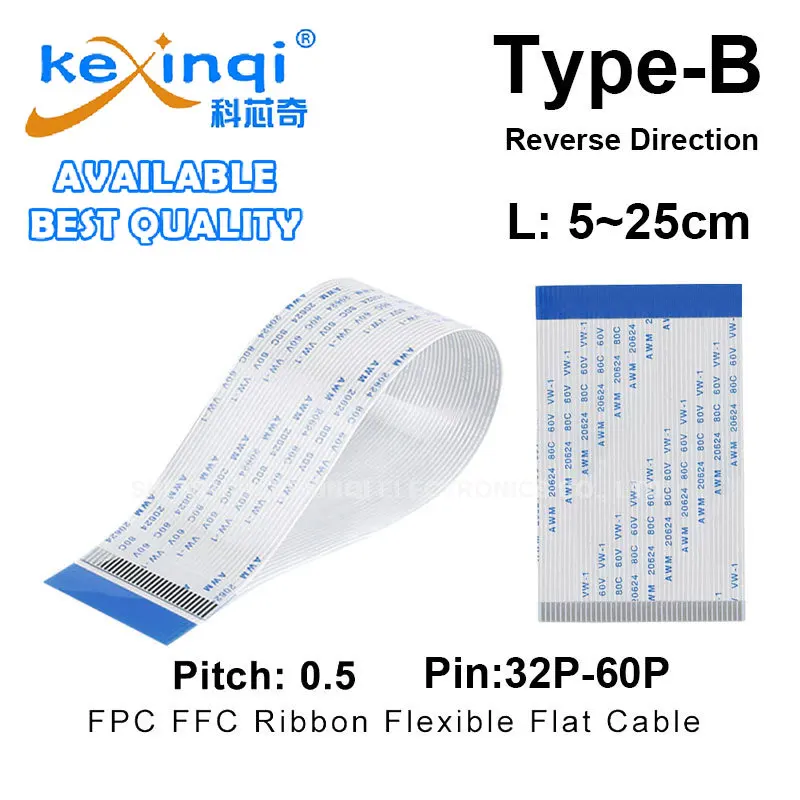 (10 pièces) câble plat Flexible 0.5mm Type B FFC/FPC 32P 34P 36P 40P 45P 50P 54P 60P fil à broches 5cm 10cm 15cm 20cm 25cm de longueur