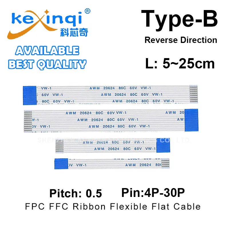 (10 pièces) fil FFC/FPC 0.5mm type-b 5/10/15/20/25cm câble plat Flexible 4/5/6/8/10/12/14/16/18/20/22/24/26/28/30 broches