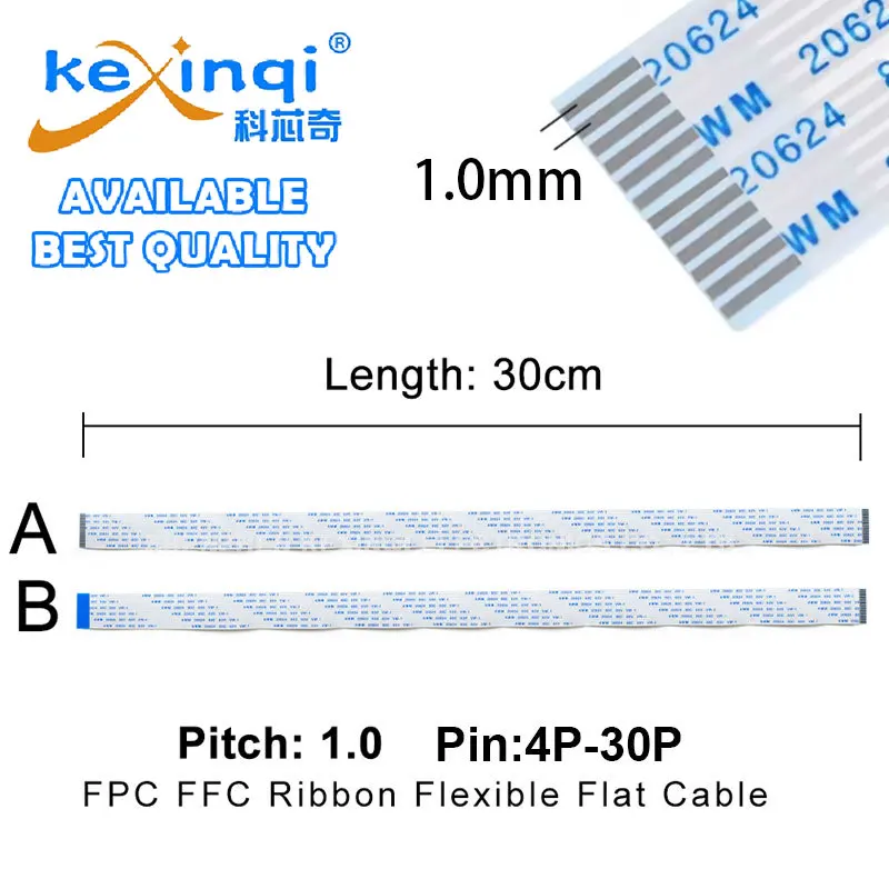 (2 pièces) fil FFC/FPC 30cm type-a/B 1.0mm câble plat Flexible 4P 5P 6P 8P 10P 12P 14P 16P 18P 20P 22P 24P 26P 28P 30P