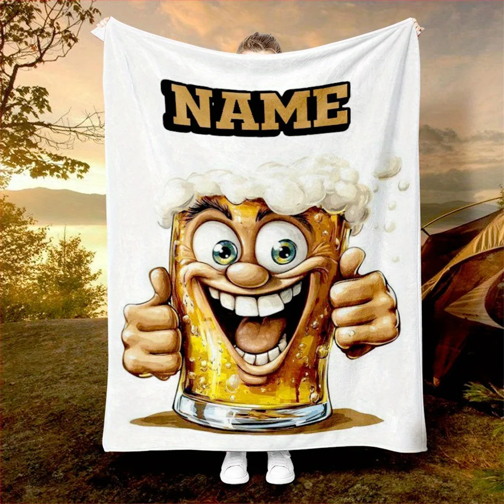 Couverture en flanelle avec bouteille de bière amusante avec nom personnalisé, adaptée au canapé, au lit, aux anniversaires, aux enfants, aux amis, aux cadeaux