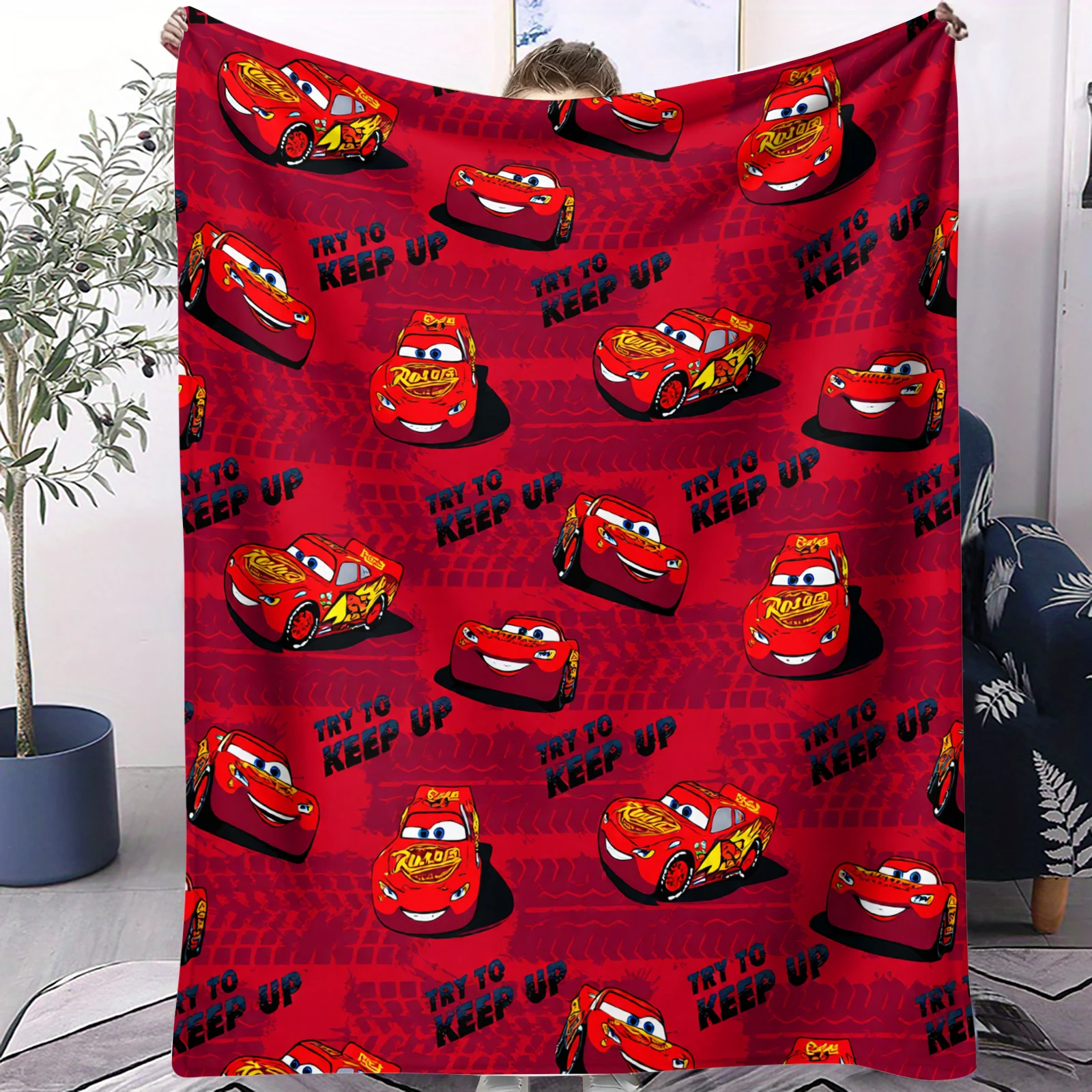 Couverture imprimée Lightning McQueen tendance, couverture en flanelle douce et chaude pour la décoration de la chambre et du canapé, cadeau unique pour les garçons et les fans de voitures