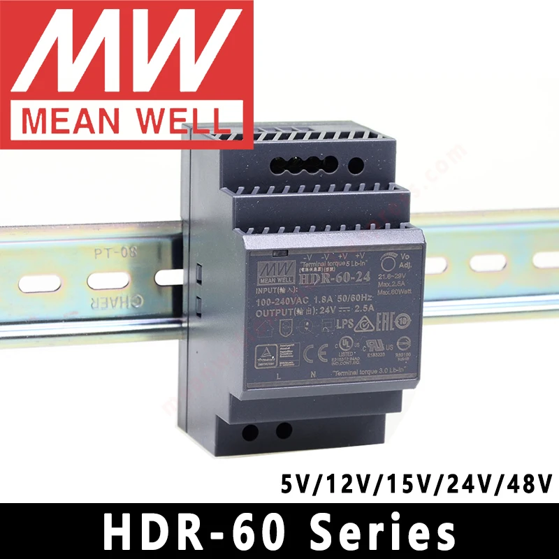 Mean Well DIN Rail LED Driver HDR-60 série Meanwell 5v/12v/15v/24v/48v LED adaptateur d'alimentation