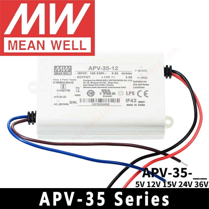 Meanwel de série APV-35 de conducteur de Meanwell LED 5v/12v/15v/24v/36v