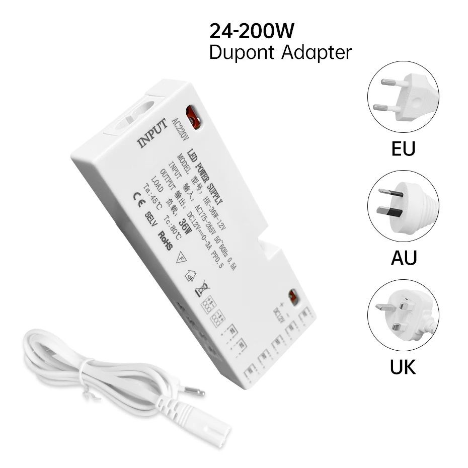 Transformateur d'éclairage LED avec Port à 2 broches, pilote de bande LED 12V 24V, adaptateur d'alimentation EU UK AU, bricolage, éclairage d'étagère pour armoire de maison