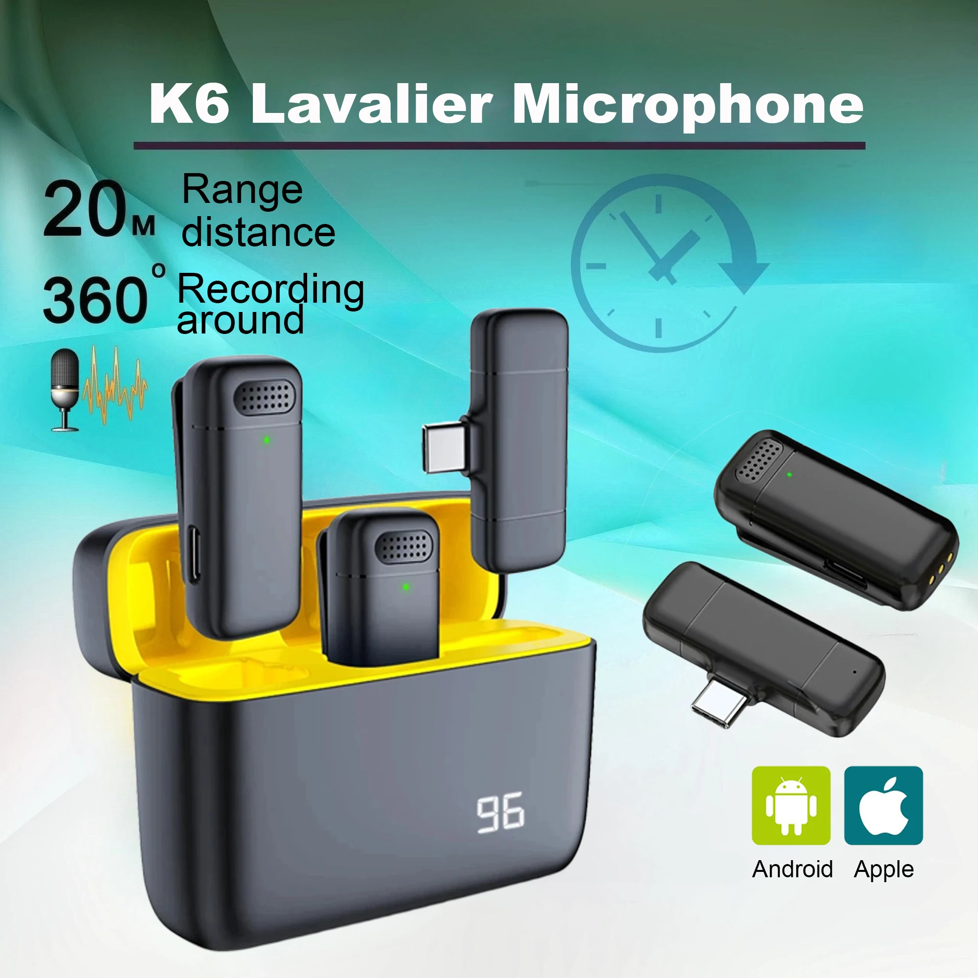 Microphone Lavalier sans fil, Mini Microphone Portable pour enregistrement Audio et vidéo, réduction du bruit, pour iPhone Android, avec boîtier de chargement