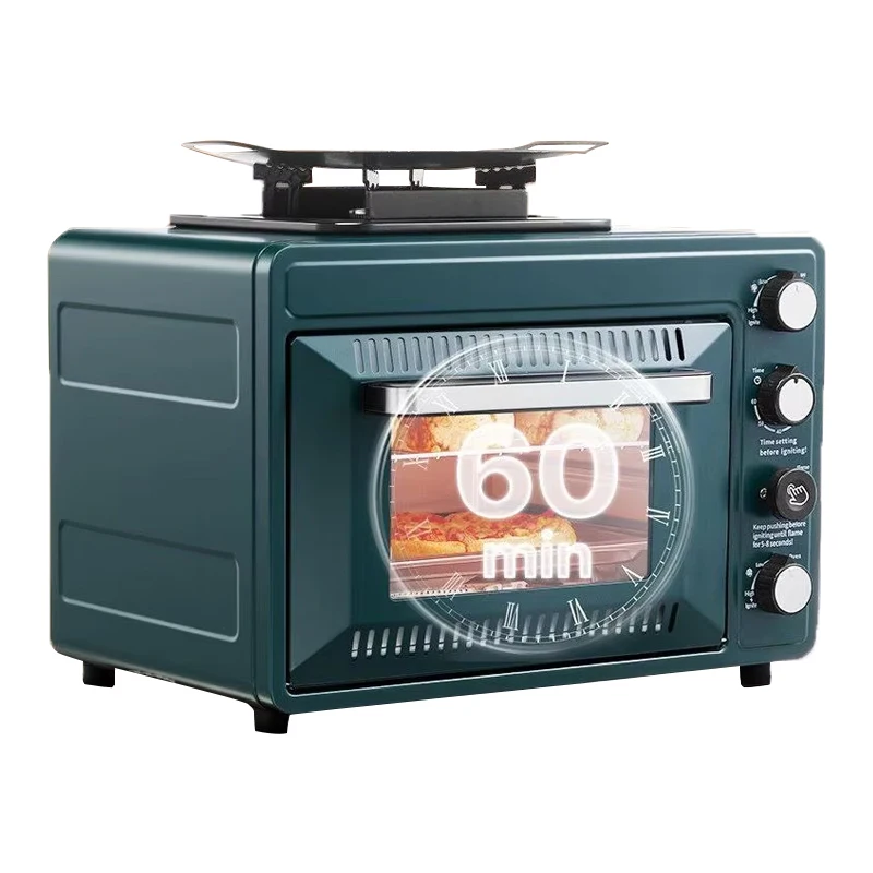 Four à gaz d'extérieur avec contrôle de synchronisation, poêle de Camping Portable à deux brûleurs avec four, flamme réglable 2 en 1