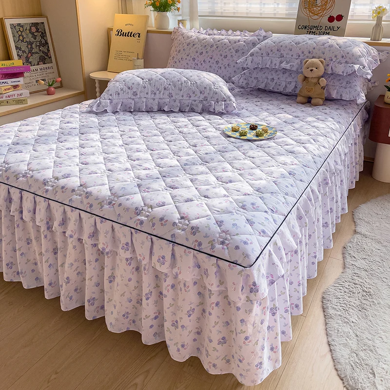 1 pièce Jupe de lit matelassée et épaissie, imprimée, pour lit simple/Queen/King, drap-housse avec jupe de lit, colcha de cama casal, 침대스커트