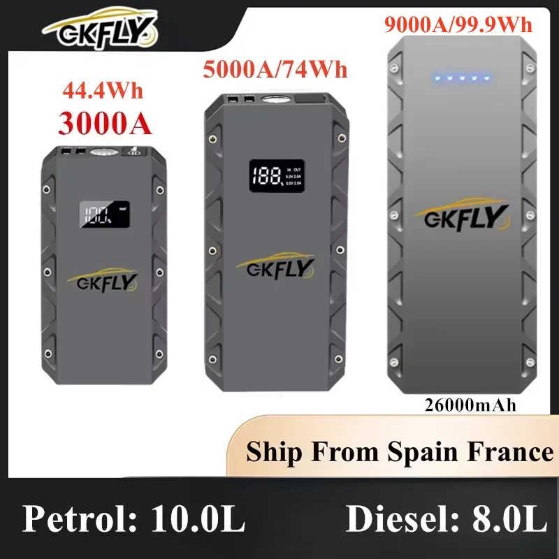 GKFLY 3000A 5000A 9000A démarreur de saut de voiture dispositif de démarrage batterie externe câble de démarrage Booster de batterie de voiture pour cavalier essence Diesel