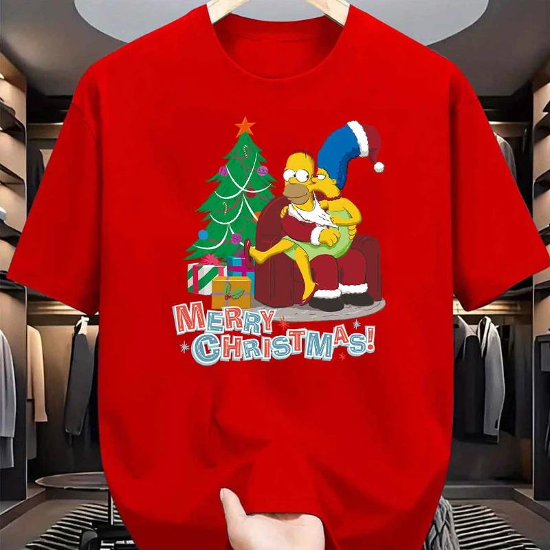 Été Simpson imprimé motif arbre de noël et personnages-meRRY noël texte fête de noël tenue décontracté hommes T-shirt