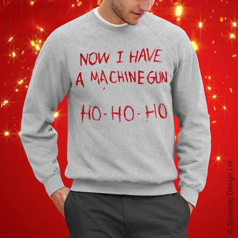 Maintenant j'ai une mitrailleuse film pull Film sweat déguisement noël Ho gris chiné Halloween garder au chaud à manches longues