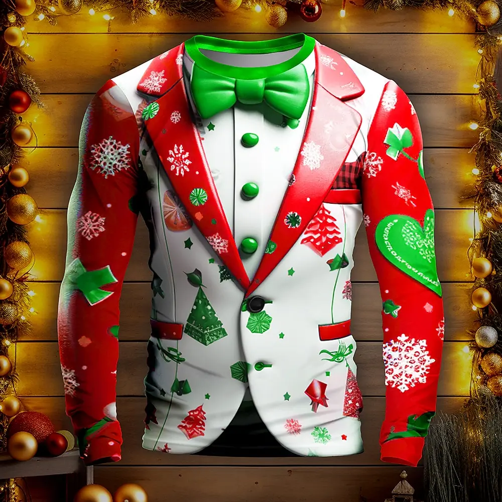 Joyeux Noël T-Shirt homme costume revers impression 3D T-Shirt à manches longues noël Cosplay mode col rond T-Shirt hommes vêtements