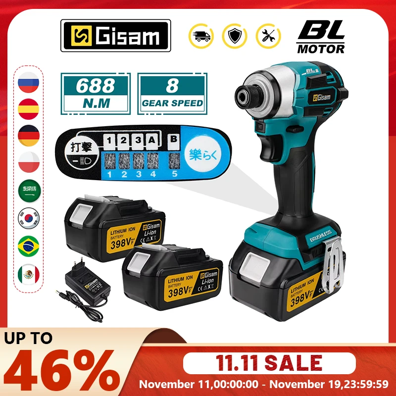 Makita – tournevis électrique sans balais 688N.m, 1/4 pouces, tournevis sans fil, perceuse électrique, Kit de tournevis à percussion pour broche de batterie 18V