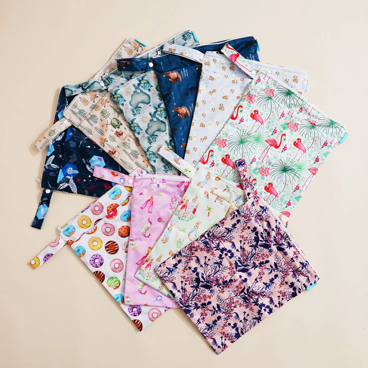 10 sacs de rangement multicolores pour couches, sacs humides/secs lavables et réutilisables avec double ouverture et fermeture éclair, grande capacité