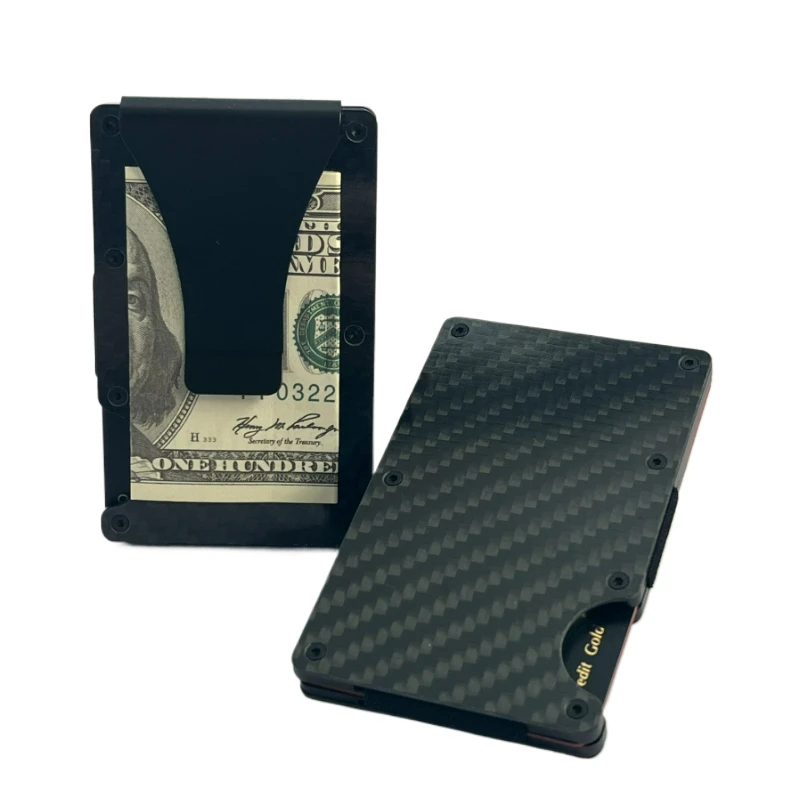 Portefeuille minimaliste pour hommes, portefeuille à sangle d'argent avec pince à billets, portefeuille en métal bloquant RFID, porte-cartes en aluminium (fibre de carbone)