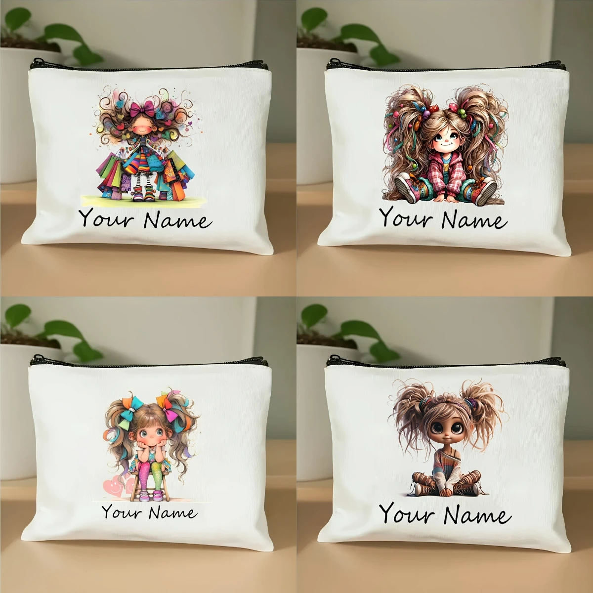 Testo de nom personnalisé, trousse de maquillage de dessin animé arc-en-ciel pour fille mignonne, organisateur de cosmétiques pour femmes, pochette Durable, trousse de toilette, trousse à crayons