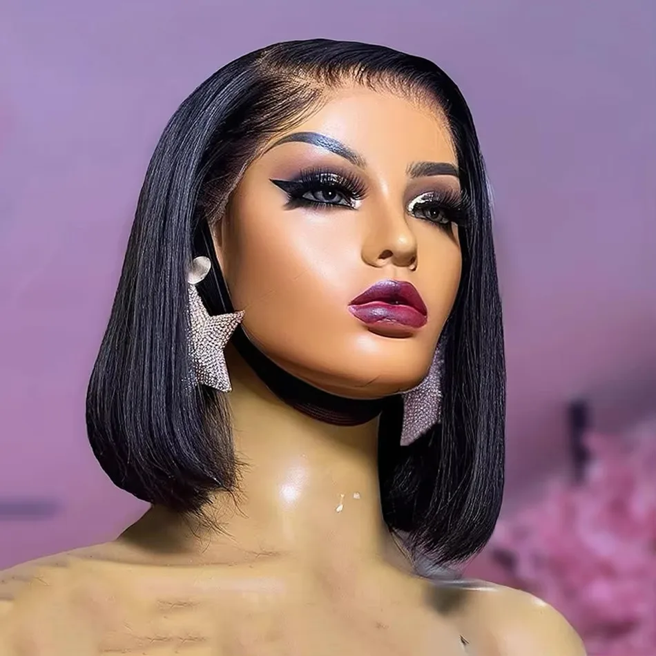 Perruque Bob Lace Front Wig 100% naturelle, cheveux courts, 13x4 HD, lisses, densité 200, perruque Lace Frontal Wig brésilienne transparente