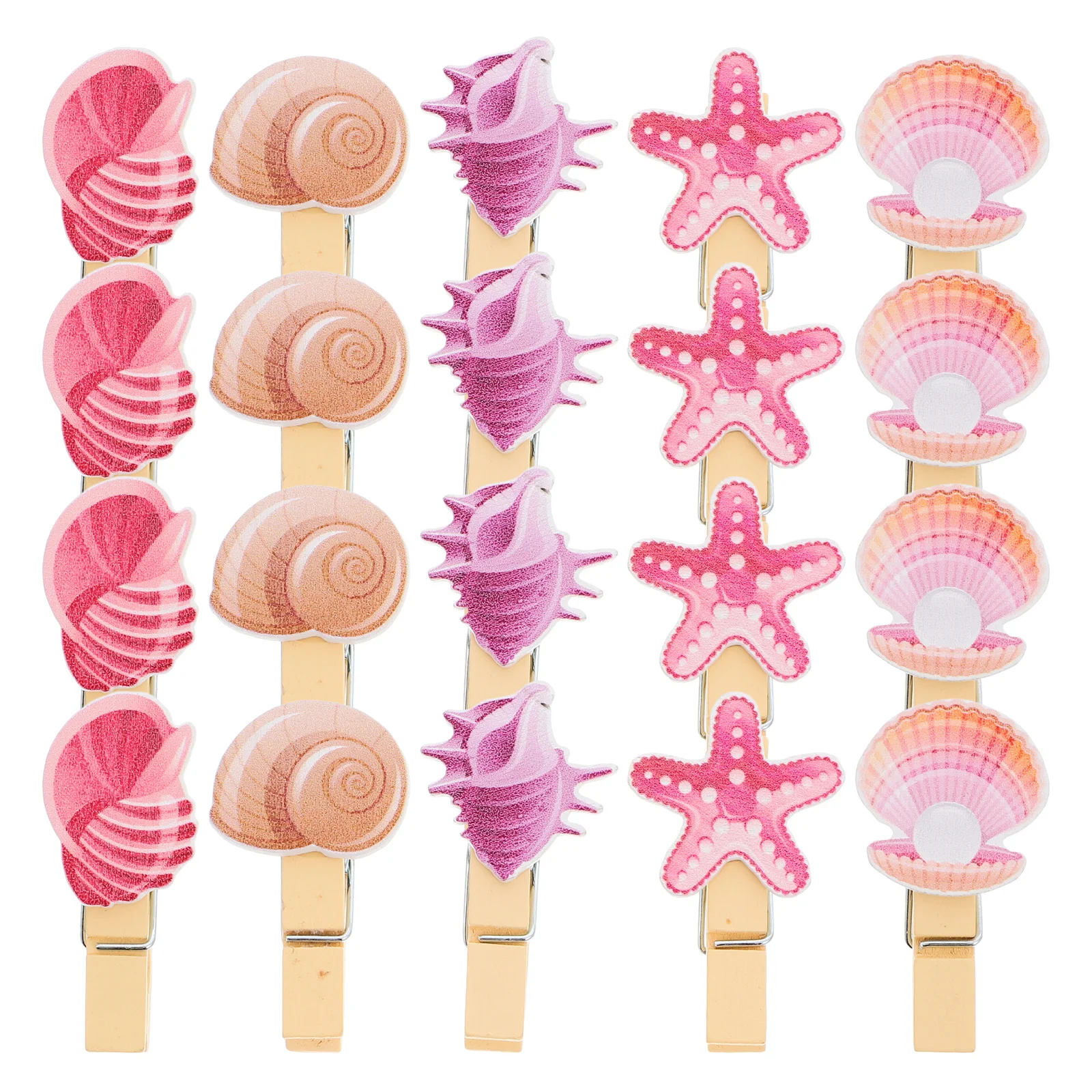 Clips Photo en bois avec coque, 30 pièces, couleurs vives, motif de vie Marine, porte-carte pour décoration de fête de mariage, piquets Photo