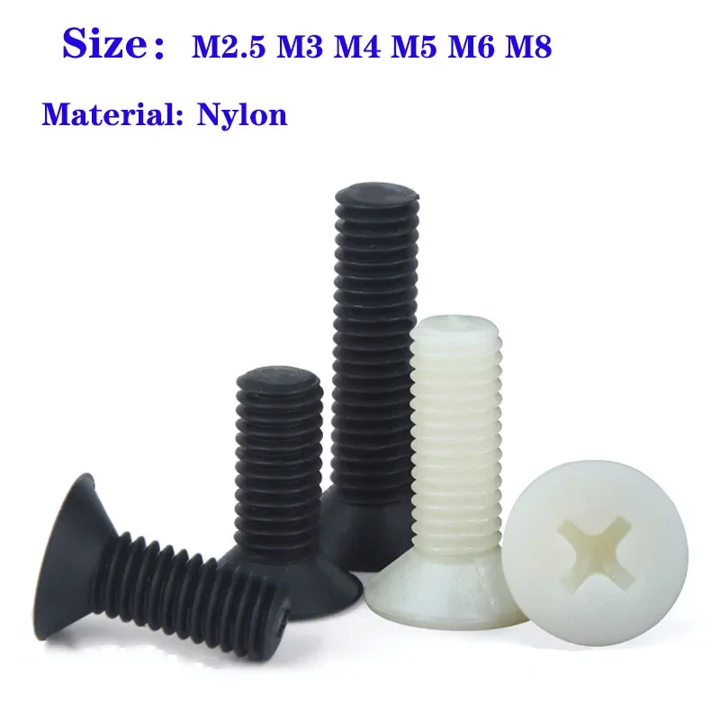 100/50/30/20 pièces blanc noir Nylon vis à tête fraisée isolation plastique Phillips vis à tête plate boulons M2.5 M3 M4 M5 M6 M8