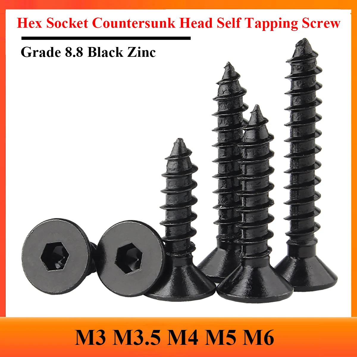 M3 M3.5 M4 M5 M6 noir 8.8 acier au carbone Allen hexagone douille hexagonale tête fraisée plate vis autotaraudeuses vis à bois