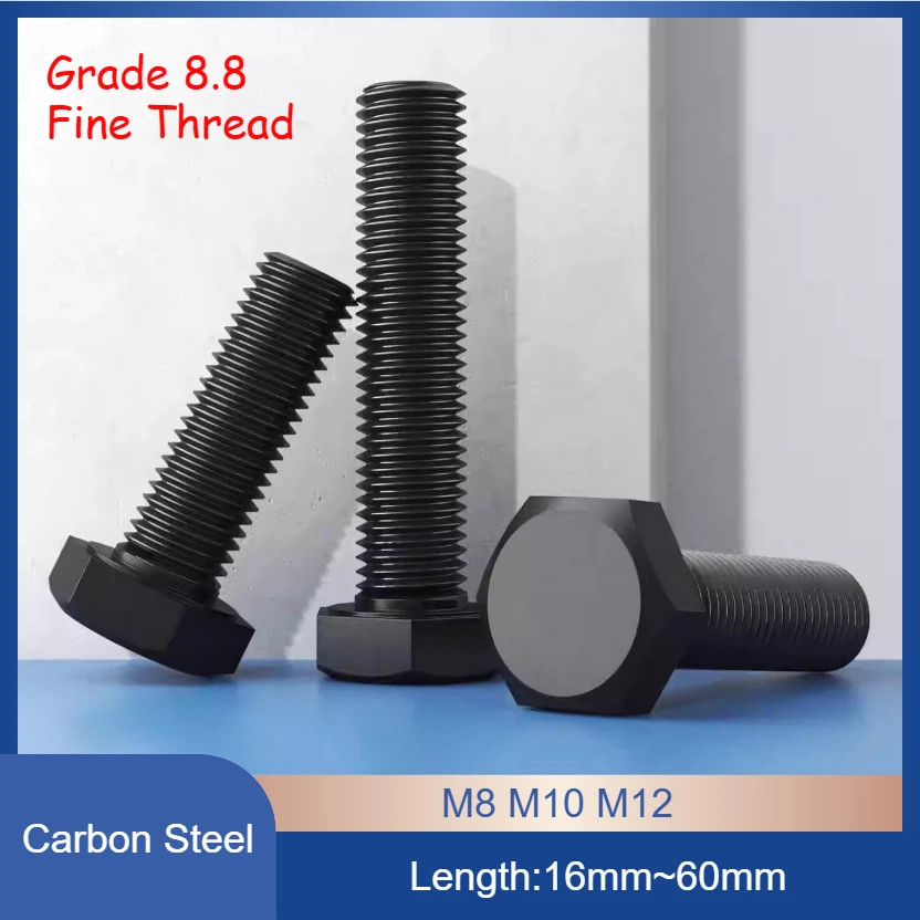 Boulons à tête hexagonale à filetage fin haute résistance de qualité 8.8, vis hexagonales extra longues M8 M10 M12