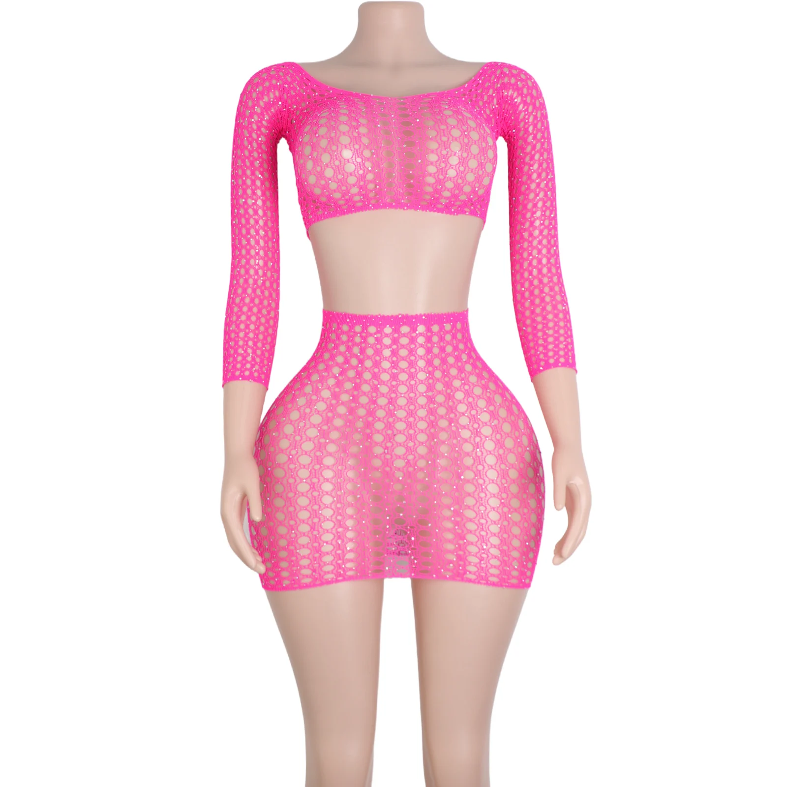 Tenue de rave pour femme, costume de batterie au néon de festival, structure en maille, haussement d'épaules en tricot, costume de séparés euse, discothèque, pole légiti, ensemble de bikini 2 pièces, 2024