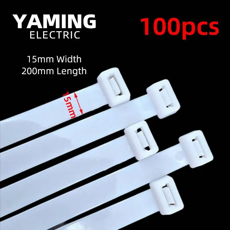 Attache en nylon plastique, 15*200mm, étiquette de fil, attache noire, largeur de l'attache 15mm, attaches de grande taille fixes, câbles réseau, cordon, fil, 100 pièces/lot