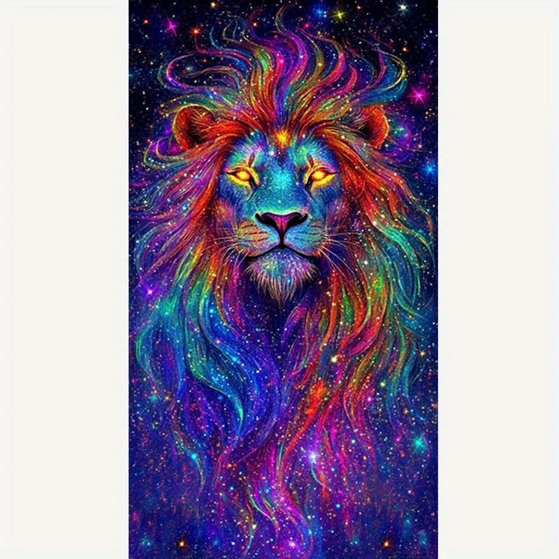 Peinture diamant Lion galaxie vibrante à grande échelle, Kit d'art acrylique 5D DIY avec étoiles scintillantes et couleurs néon, parfait pour Ho