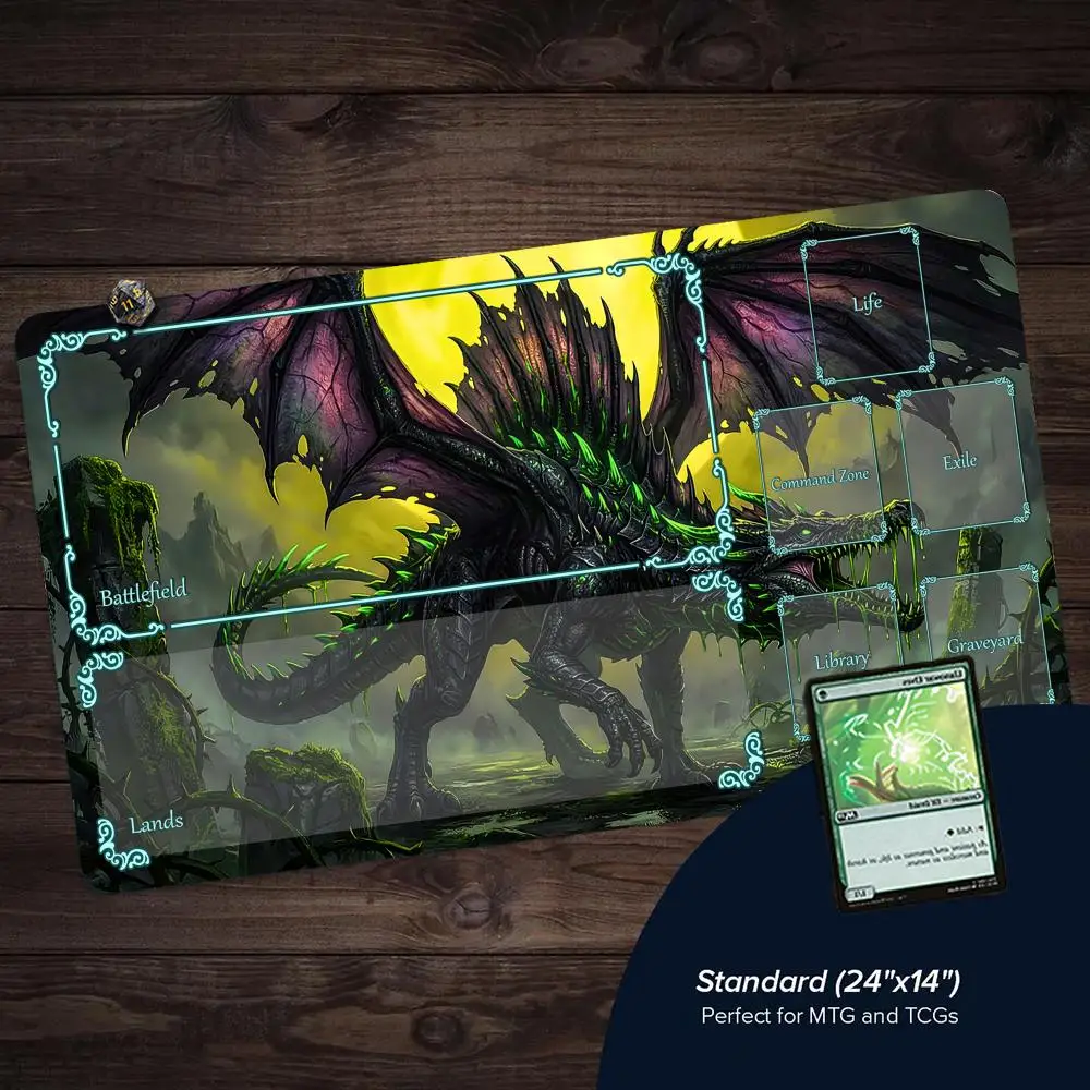 Tapis de jeu MTG avec Dragon géant, Corrosion extraterrestre, tapis de combat avec carte magique, bord cousu antidérapant, tapete magique mtg, tapis de jeu de table