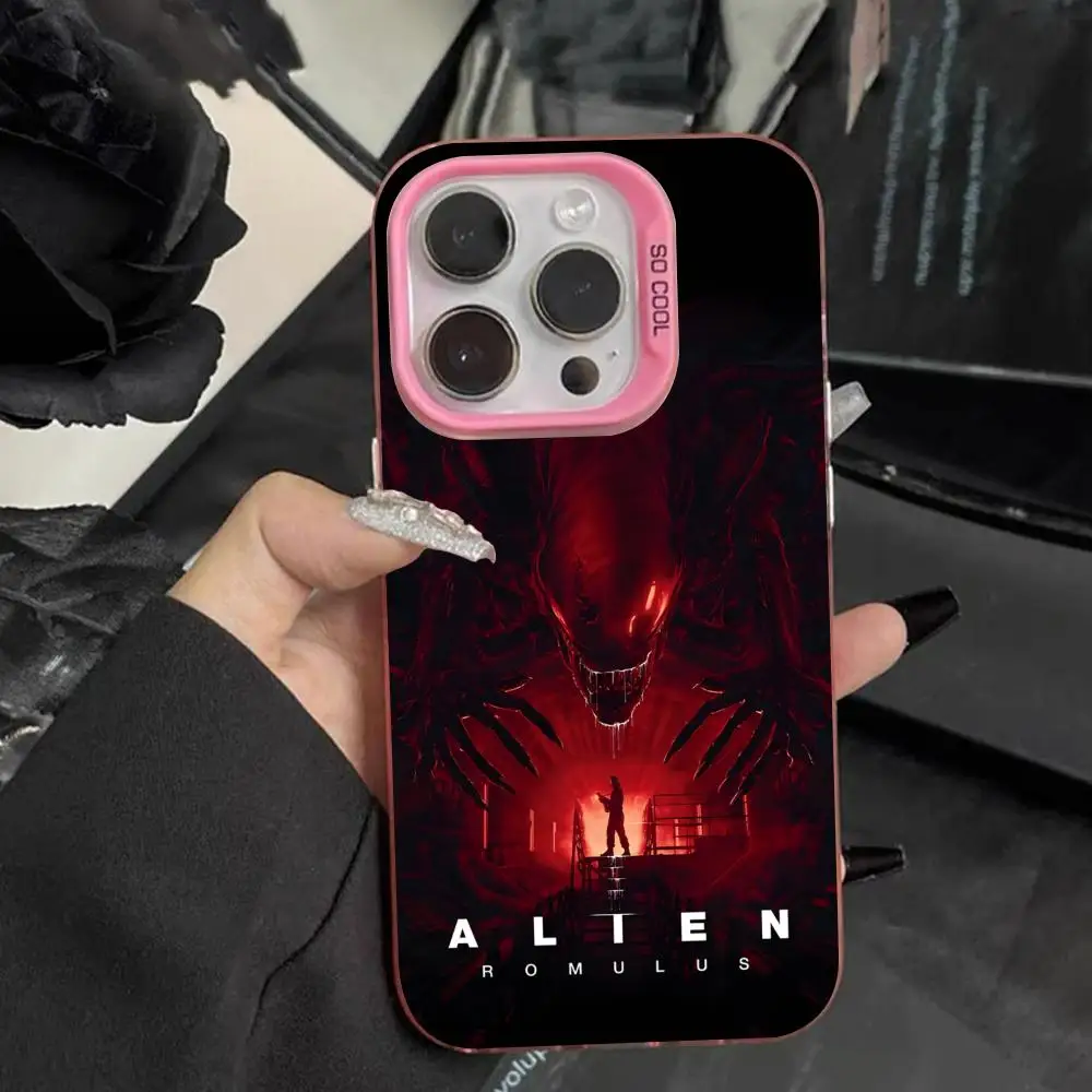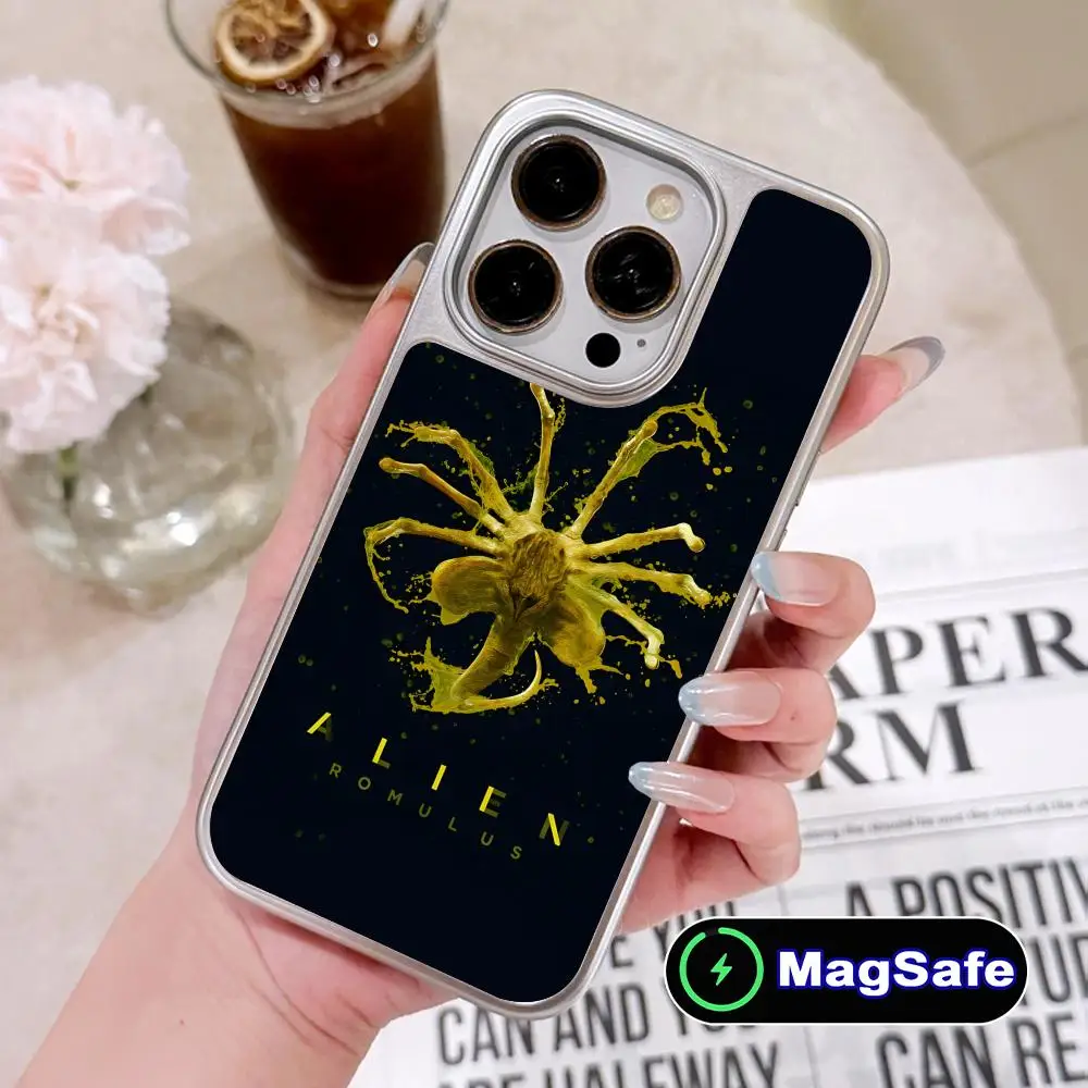 Alien Romulus – coque de téléphone portable, étui coloré plaqué argent pour iPhone 17 16 15 14 13 12 11 Air Pro Max Plus Magsafe