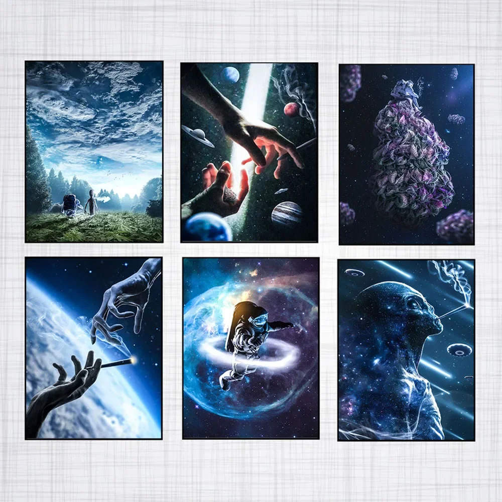 Affiche et impression de ciel étoilé, astronaute extraterrestre, amitié entre les hommes, peinture sur toile, images murales abstraites, décoration de maison pour salon