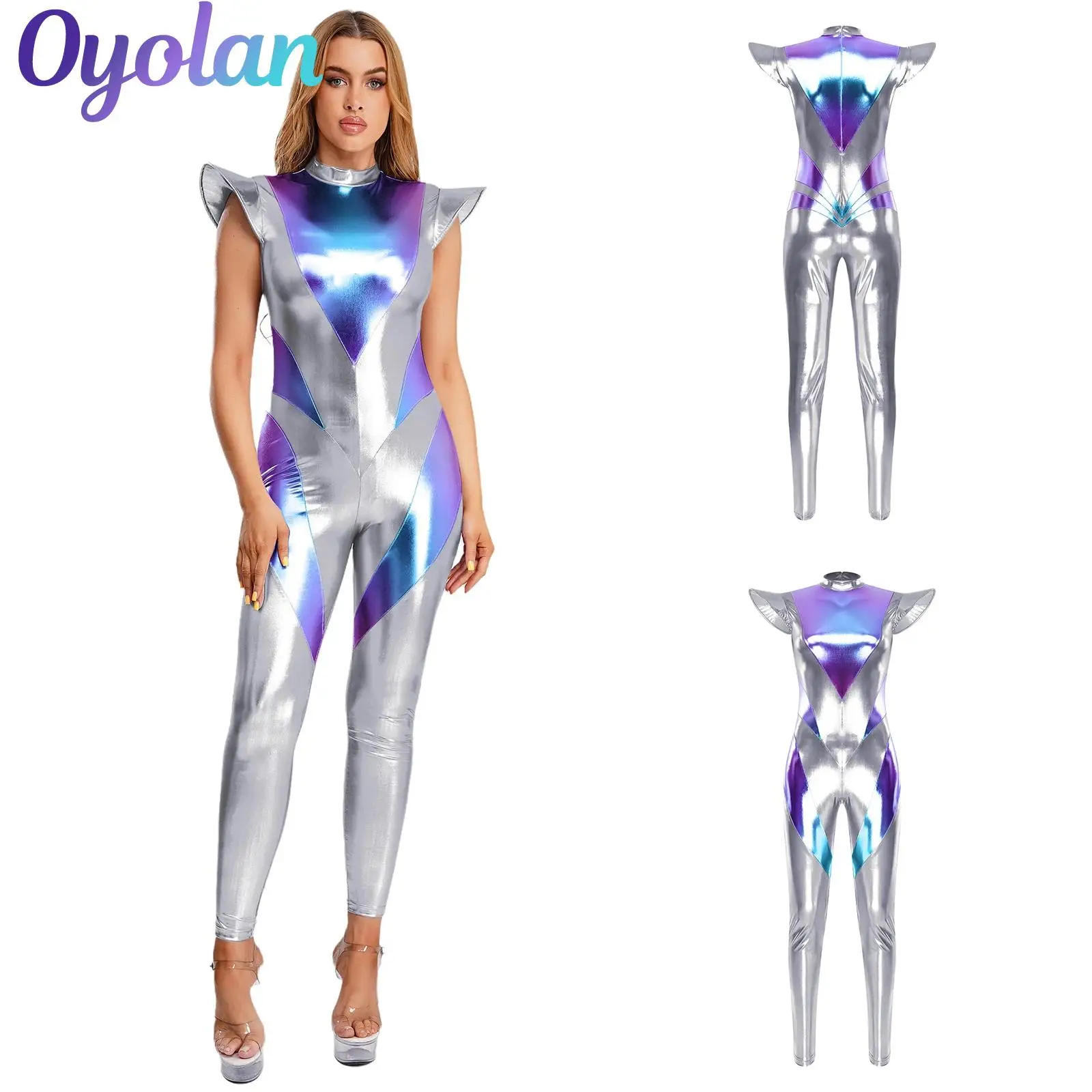 Costume de cosplay d'astronaute extraterrestre pour femmes, combinaison métallique, combinaison robot, combinaison robot irisée métallique